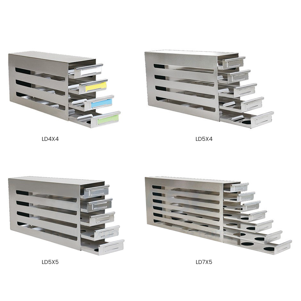 - Used for sample storage in ultra-low temperature upright refrigerators